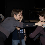 Should players decide not to complete a particular pose, they simply skip it, and are presented with a new one. If they decide to complete the pose, they hold it for 13.5 seconds, enabling them to consider the experience without turning the game into a problematic version of “chicken.” If players interact while one player is not consenting (a state that they signal through a button on the PlayStation Move), the game provides audio feedback in the form of radio static, vibrating controllers, and bright red lights at the tip of the Move. After a pose is completed, players are presented with a prompt that is intended to help them to reflect on the experience or deepen their relationship with their partner. Such a prompt might, for example, ask players to recommend media to one another, do their best chicken impersonation, or name something that the other player has done well during the last interaction. The poses are not ranked in any way, and the same pose can appear twice. This allows for people’s different personal histories with intimacy, and also allows for people to reconsider the same pose. They might have said yes to a pose, and decide the next time that this wasn’t a comfortable experience for them, and so say no this time. On the other hand, they may not have felt comfortable with a pose when it was first presented and skipped it, but after getting to know the game and their partner, they may wish to say yes the next time they see it. Some poses are also deliberately challenging for a number of logistical reasons, encouraging players to say no for reasons other than just the relative intimacy of the pose. Power dynamics are also included as a factor, with some poses mimicking power exchanges.